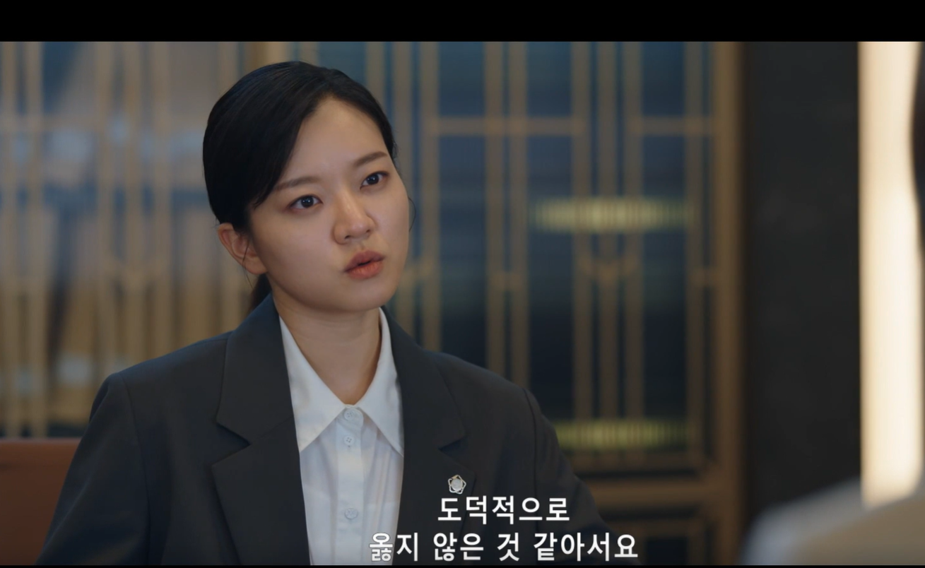 유리가 맡게된 신입 변호사가 사소한 실수를 하게 되어 지적하는데, 신입변호사는 맡은 사건이 도덕적으로 옳지 못한 것 같다고 이야기합니다. 이에 유리는 신입 변호사가 도덕적이고 소신이 있는데, 묘하게 화가 난다고 은경에게 상담하고, 은경은 꼭 한유리 같다며 웃습니다. 그런 유리에게 은경은 사건을 한번 더 맡겨 보라고 조언해 줍니다.