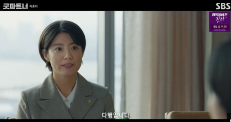 굿파트너 16회는 대정 법무법인을 찾아온 오대규 전대표의 부인의 모습에서 시작하였습니다.
